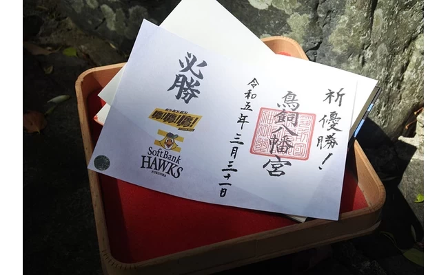 推し活で鳥飼八幡宮を訪れた方にチェックしてほしいのが、「ご縁むすびの紐」。2本1組の紐のうち1本を境内の御神木に、もう1本を自宅や持ち物に結ぶことで神様とのご縁を繋ぐというもの。10色ある“色霊”は、カラーによって意味が異なるため、願い事や推しへの思いによって選んでみてください。また、ソフトバンクホークス応援御朱印の授与も行っているので、試合観戦前に訪れるのもおすすめです。