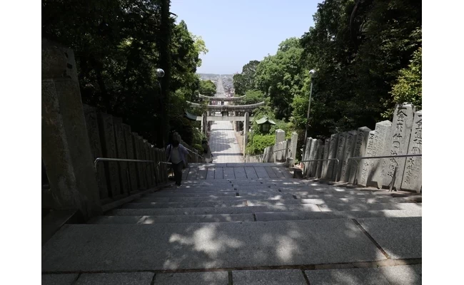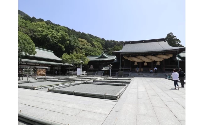 福津市にある「宮地嶽神社(みやじだけじんじゃ)」は、勝運や開運にご利益があるとされる神社。「何事にも打ち勝つ開運の神様」として信仰を集めており、神聖なパワーをあやかるため、全国から多くの参拝客が訪れます。日本一の大注連縄(おおしめなわ)、大太鼓、大鈴があり、そちらも見どころのひとつ。