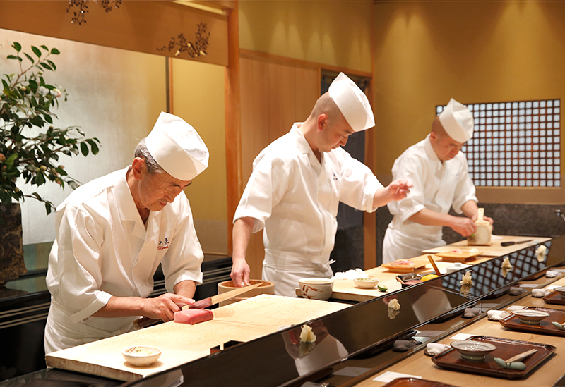 日本屈指の繁華街・銀座に佇む、1935年創業の江戸前寿司店。ウニの軍艦巻きを考案し、名人と称される初代、“現代の名工”にも選ばれた二代目に続き、現在は三代目今田景久氏へとのれんが引き継がれた名店だ。“頂きのない山を登り続ける”思いで技を磨き、“お客様に喜んでいただきたい”というもてなしの胸懐が芸術家の北大路魯山人や吉田茂元総理など各界の著名人をも魅了した、世界中の食通が憧れる江戸前寿司を堪能したい。