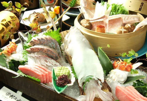 巨大ないけすを囲む活気と、船内をイメージした開放的な空間が魅力の「村上水軍」。かつての“海の大名”を彷彿とさせる豪華で豪快な料理は、大切な記念日を華やかに彩ります。主役は、産地直送の「活イカ」をはじめ、水槽から揚げたばかりの厳選された活魚たち。職人の鮮やかな手捌きで供される一皿は、透き通る身の甘みと食感が格別です。情緒溢れる掘りごたつの個室も完備。熟練の技が光る「美しい海賊料理」を囲み、日常を忘れる贅沢なひとときを大切な方とお愉しみください。