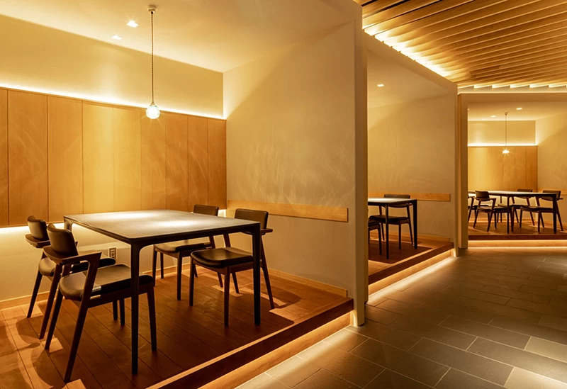 奇数月は創作和食、偶数月はフレンチが堪能できるユニークなレストラン。完全予約制・全室完全個室で、寛ぎとおもてなしを感じられる空間となっています。創作和食は、料理人の叔父に影響を受け、京料理を修業した料理長が、広島県産の地物を中心に全国各地より厳選した食材の持ち味を活かしたぜいたくな味わい。フレンチには和のエッセンスが巧妙に取り入れられ、伝統と革新が融合した独創的な味覚を楽しめます。見た目にも美しい一皿で、ぜひ特別な日を彩りましょう。
