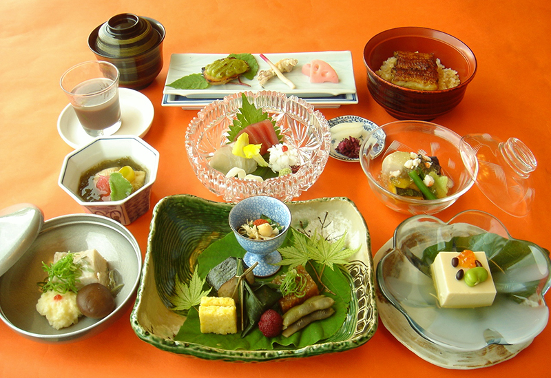 旬の素材を厳選し、技を凝らして仕上げられた料理は絶品。明治から大正期の名品と言われる器で提供されるのも、京都の老舗ならではです。ディナーコースでは祇園の華やかな宵にふさわしい、本格的な京料理を味わうことができます。誕生日や記念日など、特別な日のディナーでご利用ください。