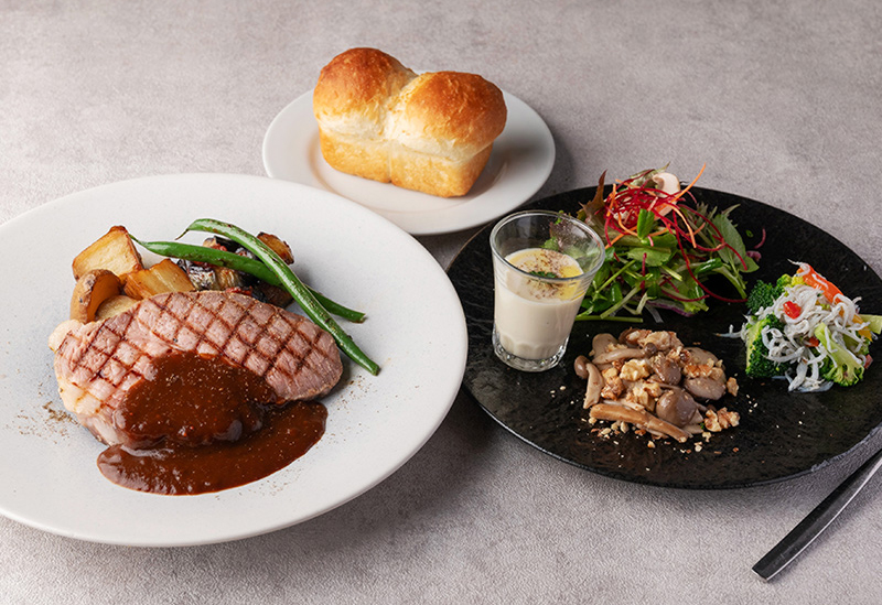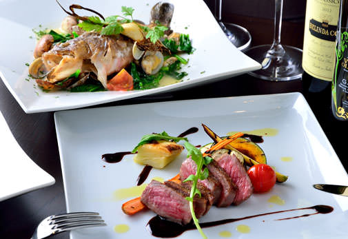 最高の食材を贅沢に使ったダブルメインのコースは、大満足間違いなし。活アワビの半身、活伊勢エビの半身、お好みのステーキがメインになっており、自慢のラクレットチーズ、季節の焼野菜、Tsubasa特製デザートも含まれます。