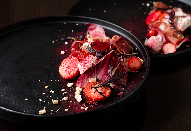 アニバーサリーコースの「紅胡蝶」で登場するのは、なんと黒毛和牛の肉で作られた肉ブーケ。見た目も華やかな肉ブーケは、写真映え抜群です。