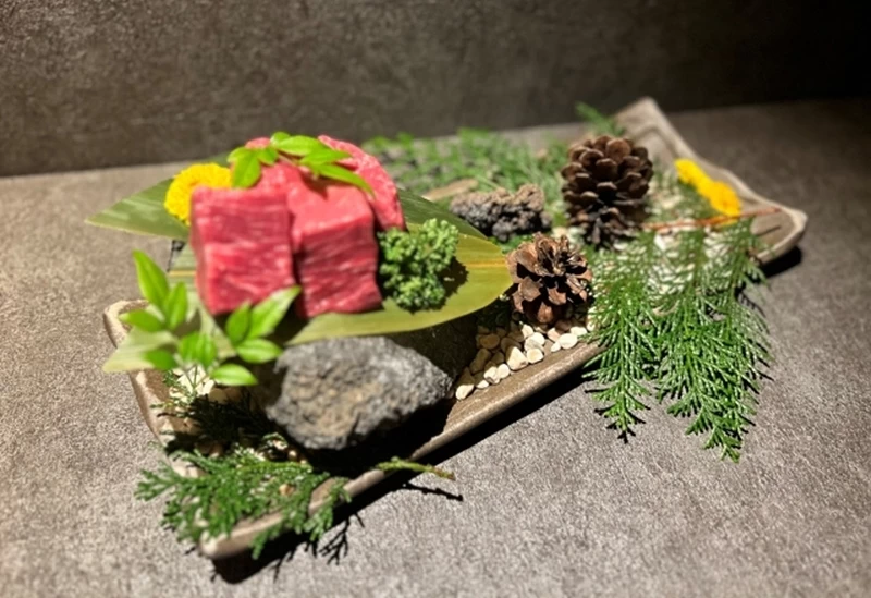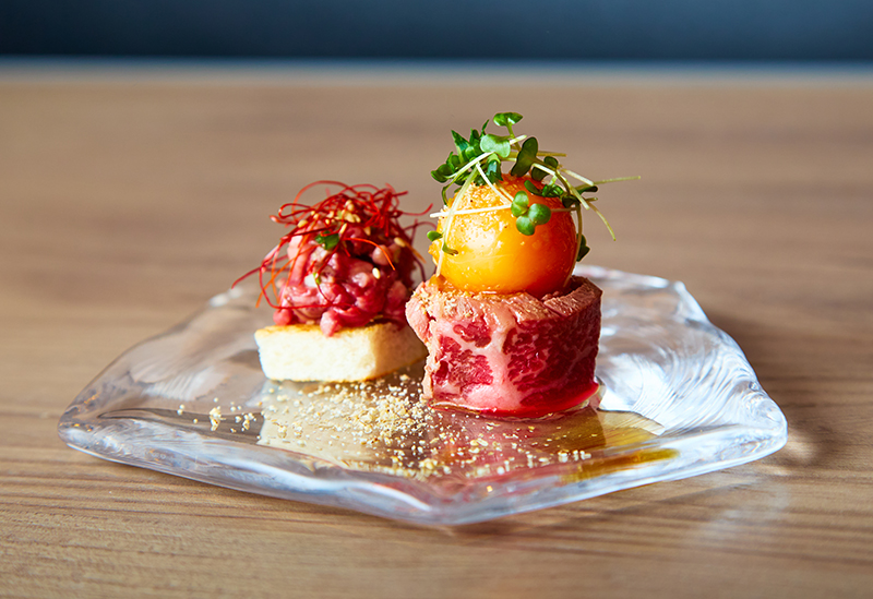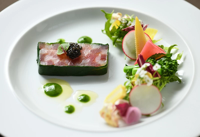 メニューは季節に合わせて全国から厳選した肉と国内及び世界各国から取り寄せた上質な食材を使用した10皿前後のおまかせコース(36,300円〜)のみ。食物アレルギーなどにも対応可能で、最適な調理方法で提供される料理では四季折々の魅力を存分に堪能できます。