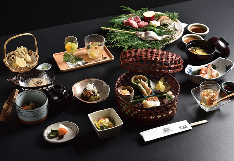 東京の自然が息づく秋川渓谷を眼下に望み、約300年前に建てられた庄屋造りの屋敷で日本料理を堪能できる「黒茶屋」。木組みの梁や茅葺き屋根が往時の生活を伝える風情豊かな空間は、訪れる人に深い落ち着きをもたらします。静寂に包まれる秋冬には囲炉裏の火がやわらかくともり、旬の食材をふんだんに使った炭火焼きが心と体をじんわりと温める贅沢な味わいです。山や川がもたらす恵みを五感で味わい、時の流れを忘れて特別な夜をゆったりとお過ごしいただけます。