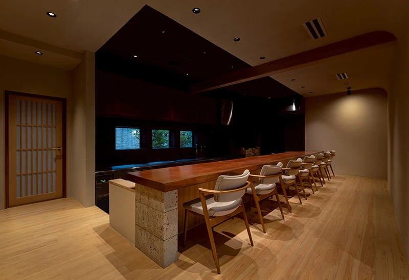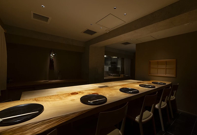 落ち着いた雰囲気の店内には、目の前で調理する様子を眺められるカウンター席、テーブル席、完全個室を完備しています。