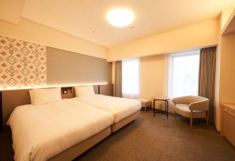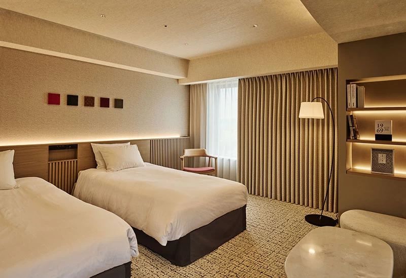 津軽の伝統工芸と北欧デザインの融合が感じられる「リッチモンドホテル青森」。1フロアに1室のみの特別ルーム「ロイヤルコーナーツイン~TSUGARU~」は、こぎん刺しのクッションや津軽塗のアートピース、津軽びいどろのグラスが用意された上質な空間となっています。また、客室内には北欧家具や広々としたデスク、高速Wi-Fiなども完備され、観光はもちろんビジネスユースにも最適です。朝食ビュッフェでは青森県産のベビーホタテや、B級グルメの「せんべい汁」など、地元の新鮮な魚介・野菜・郷土料理がずらり。青森の伝統工芸や多彩な書籍との出合いも楽しい館内で、青森の魅力を五感で味わってみてはいかがでしょうか。