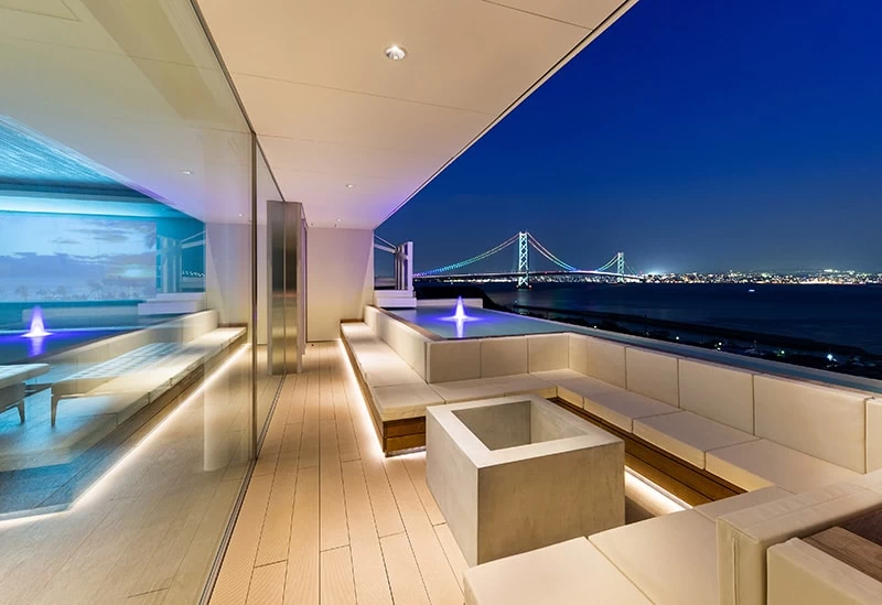 淡路島の小高い丘に佇む「CORAL SUITE VILLA awaji」は、一日一組限定の一棟貸切ヴィラです。リビングやジャグジー付きバスルームからは明石海峡大橋と瀬戸内海を一望でき、まるで海に浮かんでいるような非日常感を味わえます。ルーフトップテラスでは、BBQを楽しんだり、ドーム型テントでくつろいだりと自由な時間を過ごせるのが魅力。新設された屋外プールやサウナでリフレッシュした後は、美しいサンセットを眺めながら、ワンランク上のリゾートステイを満喫してみてはいかがでしょうか。