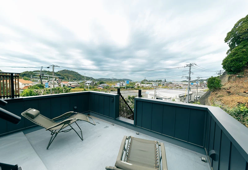 UMInoTERRACE千倉(ウミノテラスちくら)は、千葉県の千倉にある一棟貸しの貸別荘です。テラスには、太平洋を眼下に望める展望ジャグジーがあり、心ゆくまで休息できる場所になっています。青が華やかなデニムソファーやウッドフレームをあしらったチェアなど家具もこだわっており、特別な空間になっています。晴れた夜には、星や太平洋を眺めながら極上のひとときを過ごしましょう。