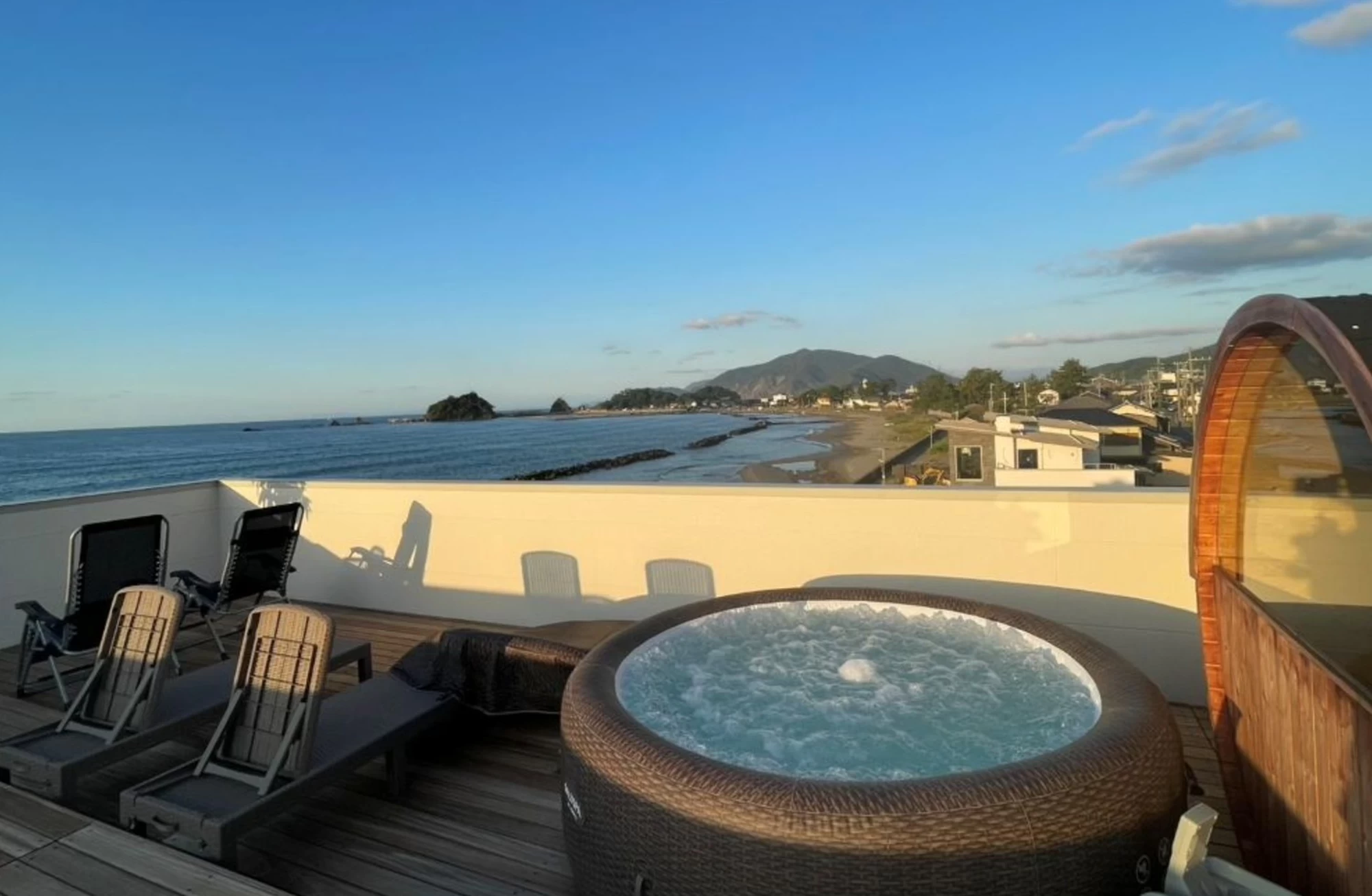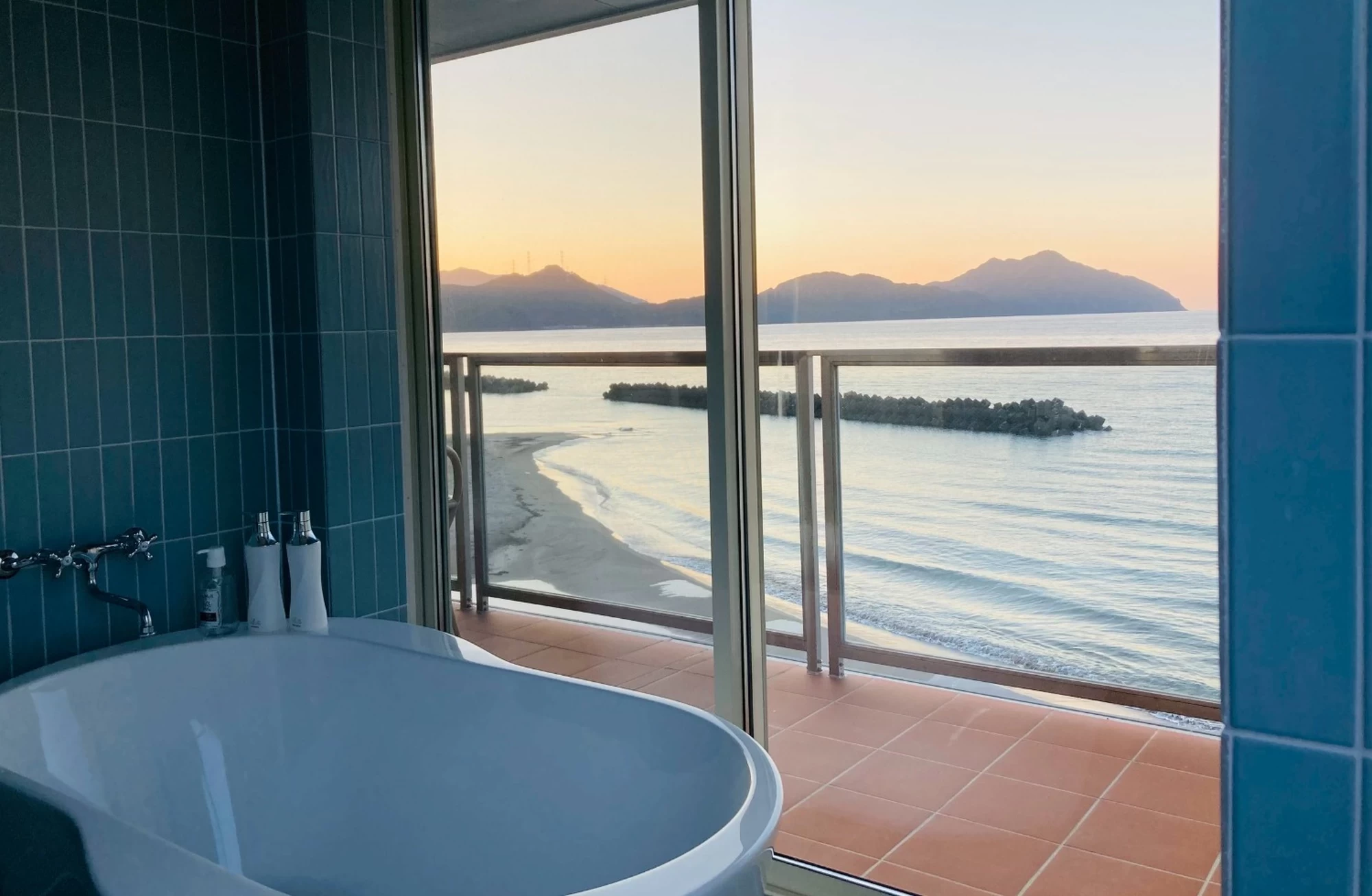 2025年オープンの海辺のリゾートホテル。全室に若狭湾を一望できるテラスが付いており、贅沢な時間が過ごせます。館内にはインフィニティプールや屋上バレルサウナを備え、サーフボードや釣り道具もレンタル可能。夕食は地元食材を活かしたイタリアンで、冬季は若狭のとらふぐ料理やズワイガニをコースで堪能できます。朝食は、海を目の前に望むテラスでビュッフェを楽しみましょう。海を感じながら、ゆったりとした滞在時間をぜひお過ごしください。