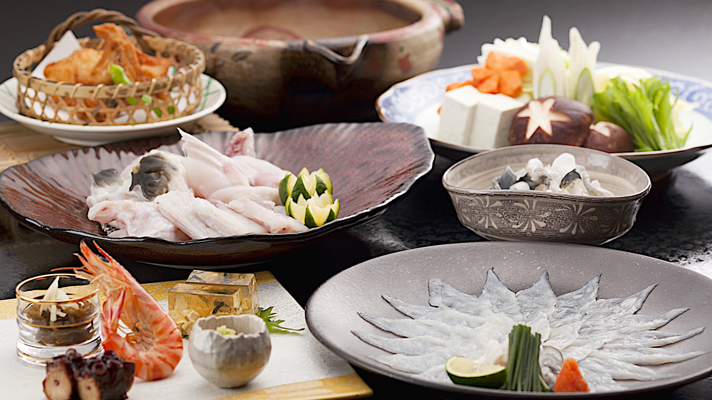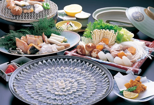 日間賀島の東港からほど近い小高い丘に建つ、全室オーシャンビューの宿。その日に獲れた新鮮な地魚や旬の魚介が自慢で、春・夏はタコ、シャコ、アナゴ、波美貝(なみがい)、秋には伊勢海老、10月から3月は名物・トラフグと、季節ごとの海の幸を存分に堪能できます。トラフグは、てっさやてっちりなど多彩な料理を楽しめるフルコースもあり、予算に応じて食事の内容が相談できるので、さまざまなシーンで利用できるのも嬉しいポイントです。旬の味覚と雄大な海景色に癒やされる旅をしてみてはいかがでしょうか。
