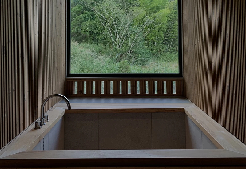 中国自動車道吉和ICから車で約30分の場所に佇む、一日1組限定のプライベートヴィラ「moon river」。最大13名まで宿泊可能となっており、グループ旅行にも最適です。テラスでは大型グリルでバーベキューも楽しめます。木の香りに包まれるバレルサウナや、信楽焼の浴槽が特徴の露天風呂も完備。露天風呂からは目の前に広がる景色を眺めながら心ゆくまで湯浴みが愉しめます。森と清流に囲まれた中庭では、自然との一体感をゆったり味わえますよ。