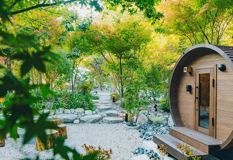 自然に包まれた贅沢空間でバーベキューやサウナが楽しめる