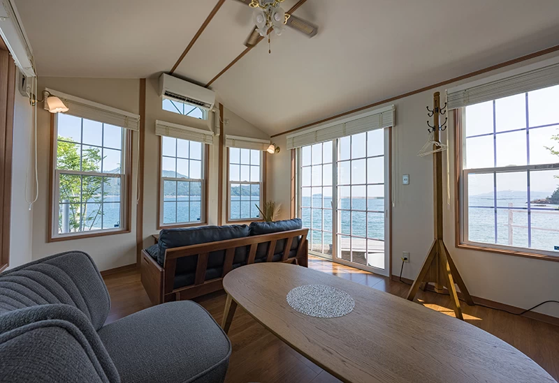 「生口島」の小高い丘に立つ、「シトラスパーク瀬戸田」内の全8棟からなるグランピング施設。スイートヴィラ、パノラマドーム、ドッグスイートヴィラなど最大5名までの宿泊が可能なヴィラにはすべてにキャンプファイヤーや花火が楽しめる広いガーデンがあり、バーベキューコンロやキッチン・冷蔵庫・電子レンジも用意されています。テントサウナが設置されたヴィラやバドミントンやモルック、ボードゲームの無料貸出など、楽しい時間が過ごせるので記念日の宿泊にもおすすめです。