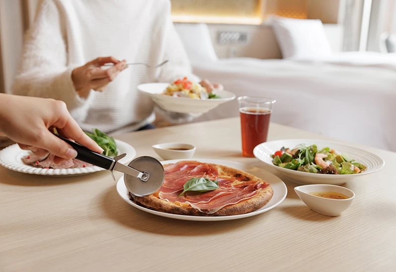 「Y-HOTEL」は、ヨーロッパの雰囲気をコンセプトにした、隠れ家のようなホテルです。それぞれ趣の異なるおしゃれな客室は、木や水、石などの自然をモチーフにしたナチュラルな雰囲気。お部屋によっては露天風呂、サウナ、カラオケ、テラスなども完備されており、大切な人と楽しいひと時を過ごすのにぴったりです。「豚肩ロースのビール煮込み」や「海老とアボカドのジェノベーゼ」など、見た目も華やかな料理をお部屋でいただけます。