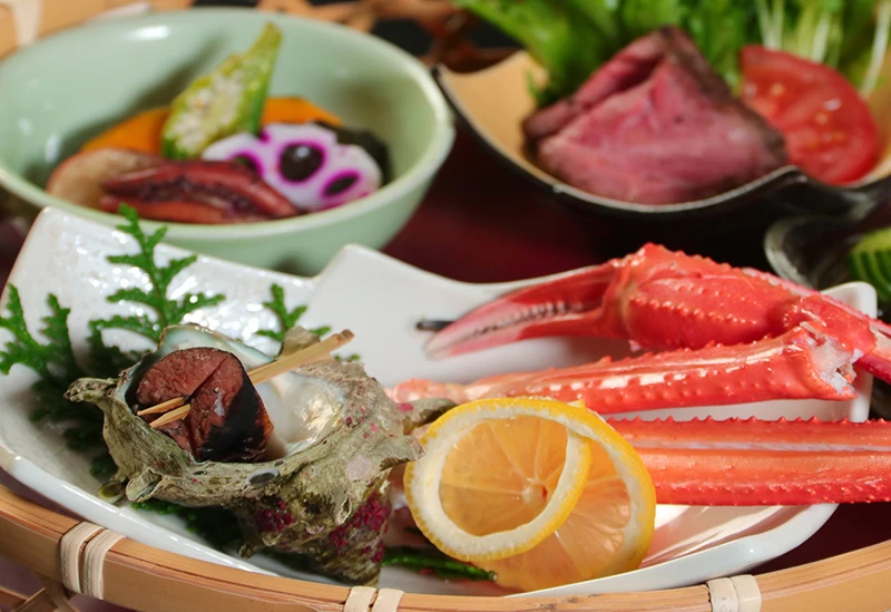 松葉ガニや紅ズワイガニなど地元のブランド食材を堪能できる