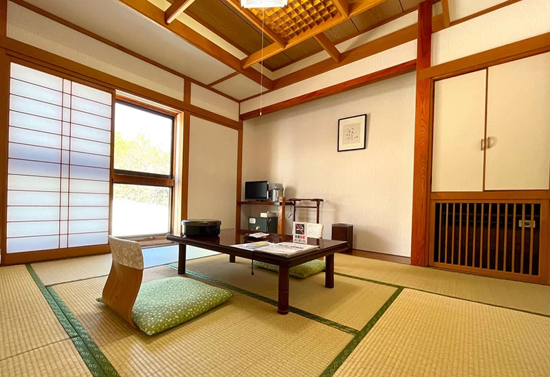 山の神温泉 別墅(べっしょ)清流館は、すべての客室に源泉掛け流しの浴室が備え付けられた湯宿です。広々とした客室にはツインベッドの和寝室、リビング、テラスがあり、広々とした空間の中でゆったりと寛げます。またとろみがあり肌触りの良い温泉は、「美肌の湯」として有名です。夕食では和牛ロースと旬の魚がメインの会席料理を、朝食では網焼きの魚や卵焼き、煮物などの多彩な料理を楽しめます。