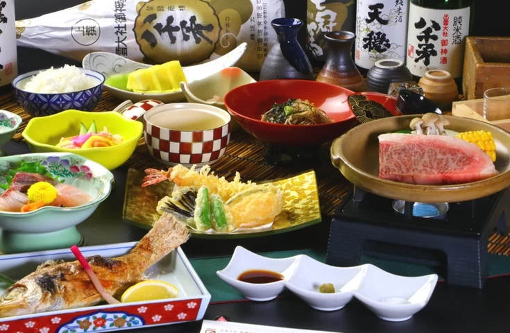 「出雲大社 御師の宿 ますや旅館」は、日本最古の神社建築様式を今に伝える国宝・御本殿がそびえる出雲大社まで徒歩約3分の好立地にある老舗旅館です。滋味豊かな島根の食材やノドグロ、しまね和牛を用いた会席を味わえます。昔懐かしい雰囲気の温泉でゆったり過ごせるのも魅力です。上品な和室・八雲やバリアフリーのプレミアム和洋室・素鵞など客室も充実しています。宴会場も備え、会食や各種行事にも対応できます。また、女性には色浴衣の貸し出しサービスも用意されていますよ。