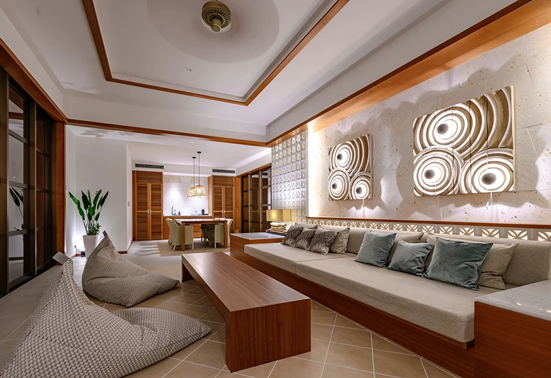 沖縄の美しい海と豊かな森に囲まれた、プライベート感あふれるヴィラ「ILUVIO Resort Motobu」。山・海・平地がバランスよく調和する本部町に佇み、まるで海外リゾートを訪れたかのような非日常の空間が広がります。広々とした温水インフィニティプールからは、沖縄の海と水平線が重なり合う絶景を一望。夜にはライトアップされ、幻想的な雰囲気のなかで季節や時間を問わず楽しめます。また、開放感あふれるキッチンダイニングでは、好きな食材を持ち込んでの自炊もおすすめ。リビングに設置された大型テレビの前で、家族や友人との寛ぎのひと時をお過ごしください。