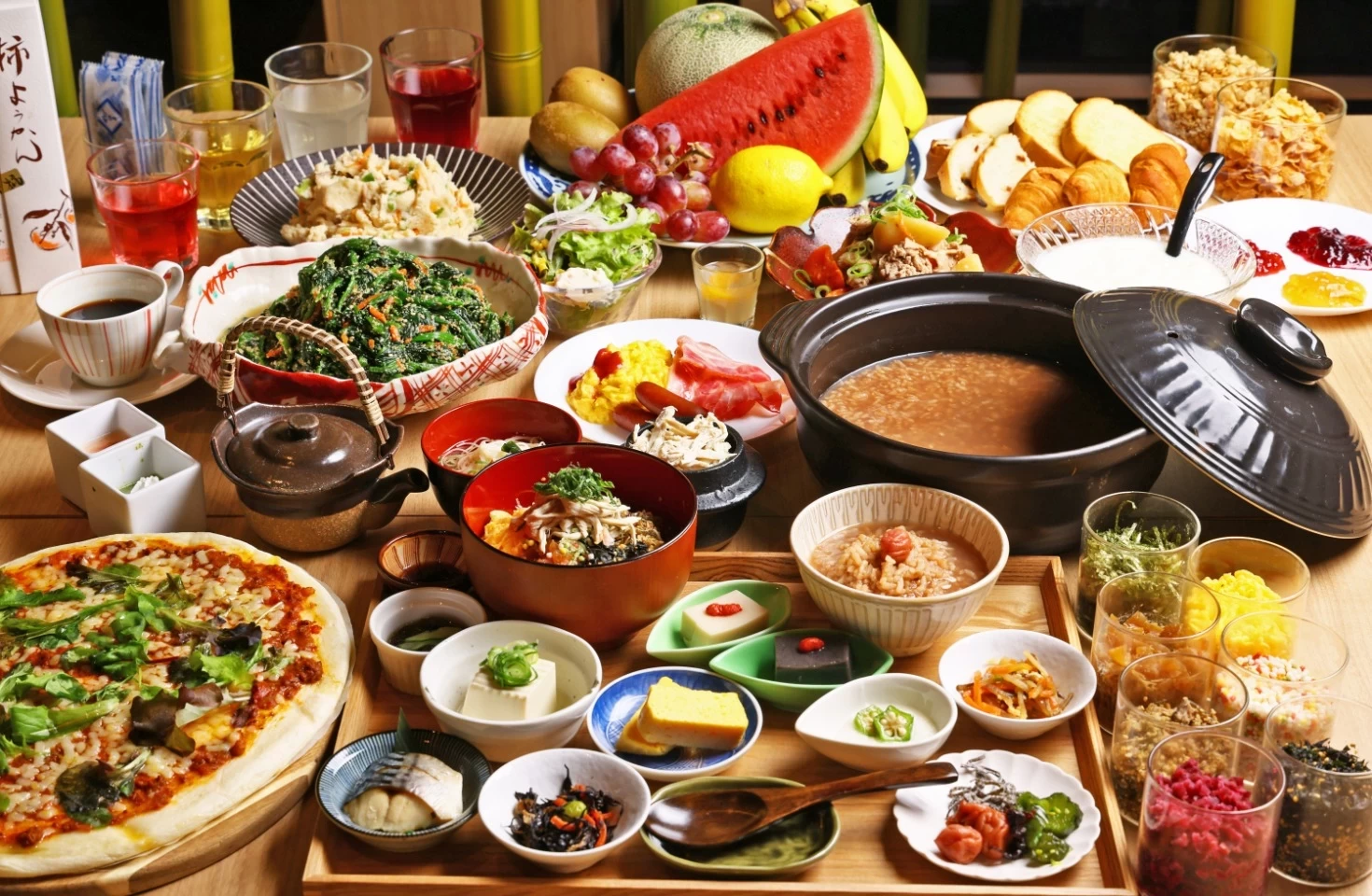 京都ならではの伝統文化の世界観と上質なホスピタリティを体感できる「オリエンタルホテル京都 六条」は、記念日の滞在にぴったりな一軒です。ロビーラウンジは茶庭をモチーフにした“露地”を表現し、ほの暗い通り道をちょうちんの明かりに導かれて進むと、茶室を模した客室へとたどり着きます。フリーラウンジでは和風ダシや茶、あめを使ったドリンクや小菓子を無料で楽しめます。朝食は京都産白米や白味噌の味噌汁、南禅寺とうふ、多彩なおばんざい、和スイーツをブッフェで味わえますよ。