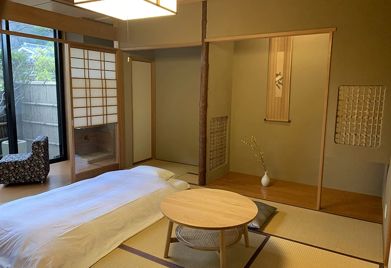 客室には京都らしいおしゃれなデザインの浴衣が用意されており、部屋によっては畳が敷かれ、和の雰囲気を感じることができます。和の空気を楽しみながら、京都での滞在をぜひお楽しみください。
