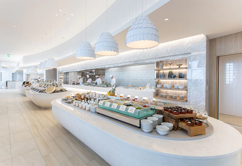 唐津で存分に非日常体験をしたいならこちらのホテルがおすすめ。すべての客室から玄界灘を眺められ、高級感あふれる客室でさざ波を聴きながらリフレッシュできます。東館の屋上には、ルーフトップサーマルバスを完備。水着着用で男女ともに利用できるスパラウンジから、ダイレクトに行き来ができるのも魅力です。地元の海鮮などが楽しめる日本料理「松風」、和洋中の料理とスイーツが並ぶバイキングレストラン、佐賀牛を鉄板焼きで味わえる「吉祥」など食事処も豊富です。
