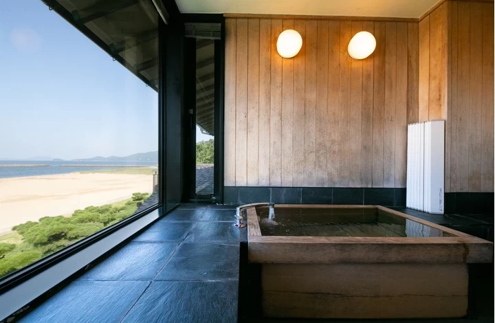 JR唐津駅から車で約8分ほどのアクセスで、海岸沿いに佇む老舗旅館。客室はすべて和室で、唐津湾が眺められる部屋、唐津城が見える部屋などさまざまあります。小型犬と宿泊できる部屋が2部屋用意されており、宿泊先から徒歩で海沿いへ一緒に出かけられるのもこの宿ならではの魅力です。大浴場やお好みの温度に調整できるサウナもあるため、日ごろの疲れをしっかりと癒やせます。