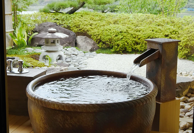 歴史的都市区の中心に佇む「京都の町のど真ん中、お風呂とお料理の宿 旅館こうろ」は、繁華街も徒歩圏内にありながら、静かな環境で京都の魅力を存分に味わえます。天然の素材にこだわった大浴場は、御影石や青石、竹などが使われ、京都でもめずらしい迫力ある総木造りの浴槽があります。また、ひのき風呂付の特別室も用意。プライベートな空間でゆっくり寛ぐことができ、カップルにおすすめです。料理もまた一流で、素材を活かした京料理が自慢です。