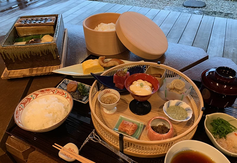 こだわりの地元食材が並ぶ豪華な朝食