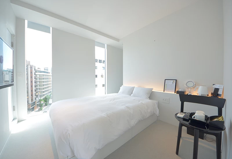 JR京都駅から徒歩圏内、快適な滞在時間が過ごせるビジネスホテル。室内温度や香りなど細部にまでこだわった環境づくりを施しており、客室の天井は高く、圧迫感を与えない造りが魅力です。