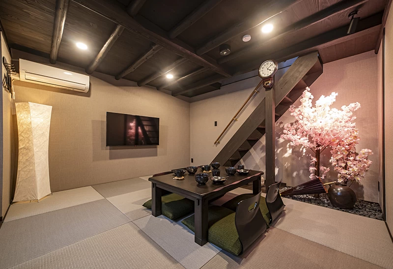 長崎電気軌道・思案橋停留場から徒歩約7分の場所にある、古い長屋の一角をリノベーションした一棟貸しの宿。繁華街・思案橋や長崎新地中華街にも近く、飲食や観光にぴったりな立地です。1階には風情あるリビングとキッチン、バスルーム、2階には畳や障子のある寝室を備え、どの空間も昔の日本家屋の風情を残しつつ快適に過ごせるようなつくりになっています。冬はリビングでこたつを囲み、気の合う仲間と団らんのひと時を持つのもいいですね。