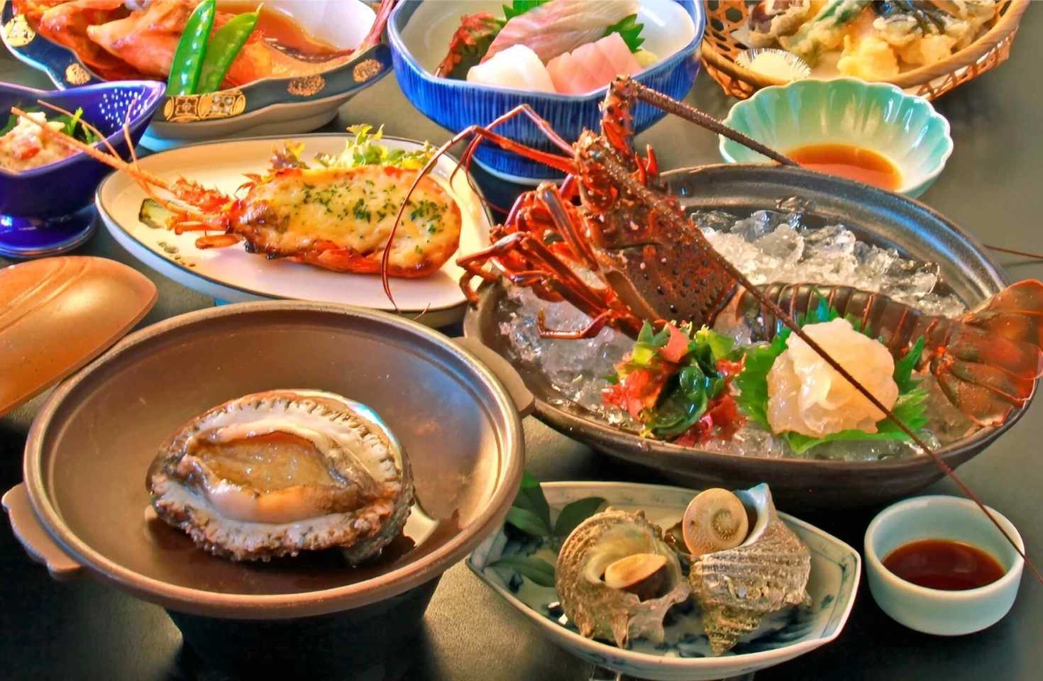 海女と漁師の町ならではの海の幸と「社宮司温泉(しゃぐうじおんせん)」が堪能できる「リゾートヒルズ豊浜 蒼空(そうくう)の風」。露天風呂付きの客室など、全9タイプの部屋があり、滞在スタイルに合わせられます。また、ロビーも疲れを癒やせる空間で、ハンモック・フィッシュエステなどが利用可能です。お風呂では、昼は太平洋、夜は星空を一望できます。伊勢志摩ならではの、目と舌で味わえる会席料理は絶品です。