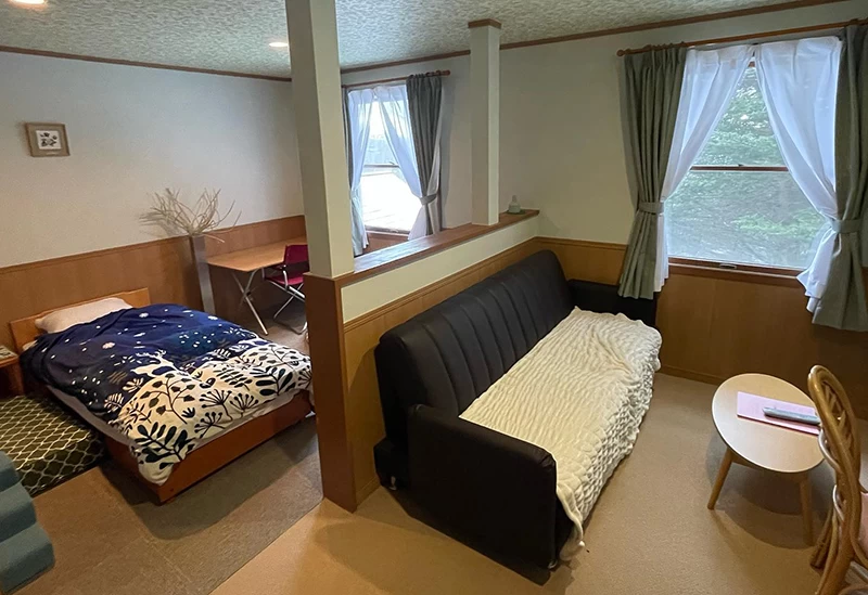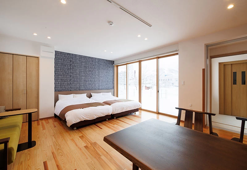 白馬の中心部にある一戸貸切タイプのヴィラ。ほかの利用者を気にすることなく過ごせるので子連れ旅には嬉しいですね。メゾネットタイプで1階は談笑しながら寛げるリビングダイニング、2階は寝室となっており、まるで自宅に居るような気分になります。