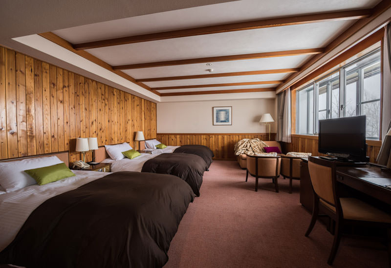日本最大級のスノーエリア・志賀高原の一番奥に位置する「奥志賀高原スキー場」の目の前に佇むリゾートホテル。標準的な客室でも42平米あり、家族でゆったりと過ごすことができます。お部屋には豊富なアメニティやポットやドリンクなどがあり、女性や子連れに嬉しいポイントが盛り沢山です。