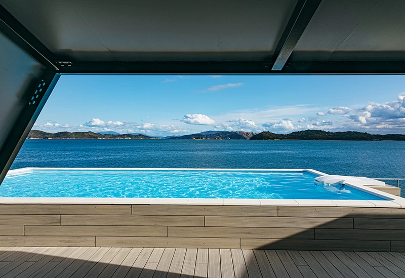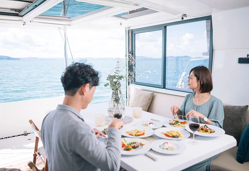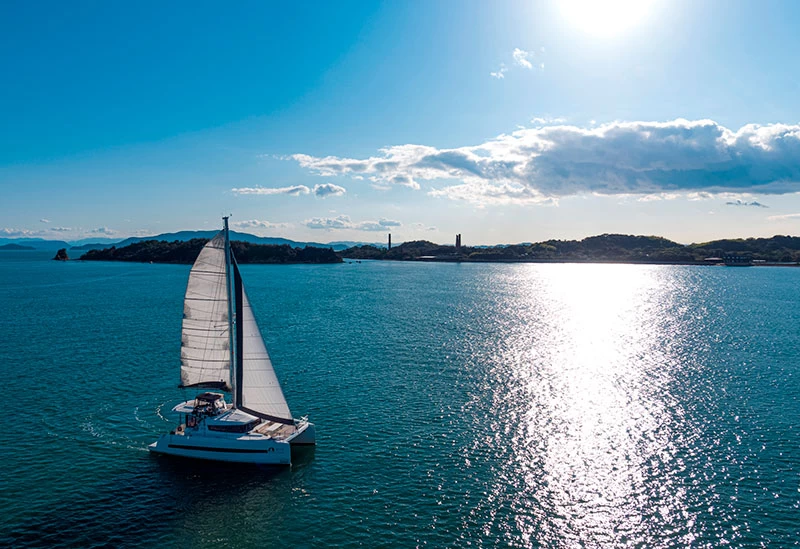 JR西日本宇野みなと線宇野駅から徒歩約4分、個室付き、アメニティ・Wi-fi完備で、まるでホテルのように快適なプライベートヨットクルーズ体験。“現代アートの聖地”といわれる直島や、自然と芸術の共鳴する豊島、近代産業遺産を美術館に再生した犬島など見所たくさんの船旅は一生の思い出になること間違いなし。プランは「宿泊チャーター」と「DAYチャーター」の2種類で、シーンに合わせたクルーズ体験が楽しめます。