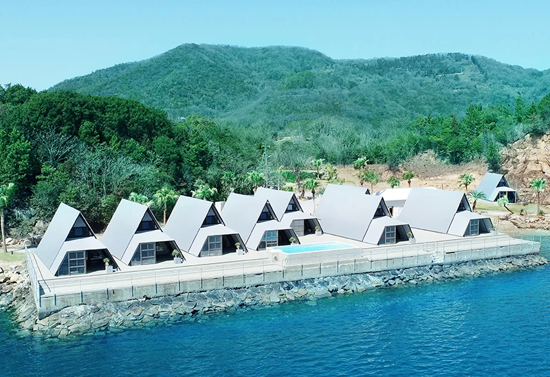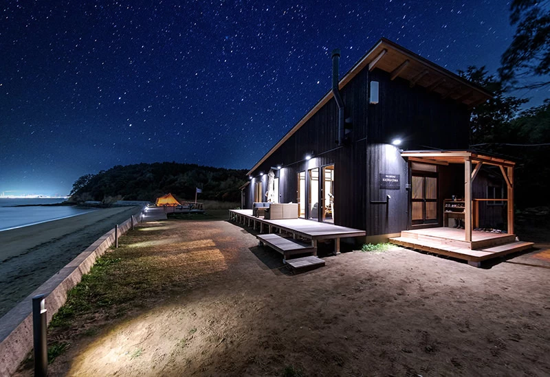 岡山県玉野市の宇野港から船で約30分、1日1組限定の貸切無人島。SUP、シーカヤック、釣りなどのマリンアクティビティをはじめ、たき火やキャンプファイヤー、テントサウナなどの豊富なアウトドアアクティビティが楽しめます。コテージやドーム型テント、緑に囲まれた丘でのキャンプなど、シーンに合わせた宿泊が可能。日帰りのDAY CAMPプランもあり、気軽に無人島の空気感を味わえるのも嬉しいポイント。