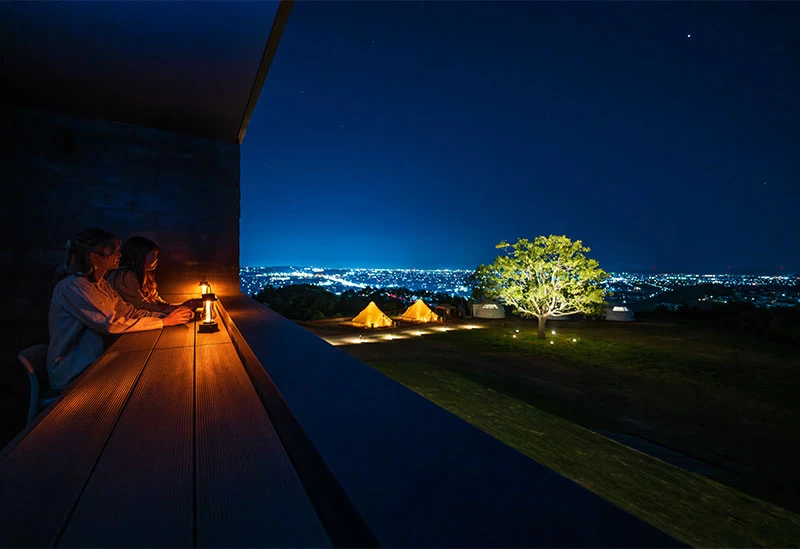 JR倉敷駅から車で約15分のキャンプ&グランピング施設。完全個室のキャビンスタイルや持ち込み可能な区画サイト、グループ同士で宿泊できるコネクティングドームなどの施設が揃い、団体旅行でも快適に利用できます。地元の卵を使用した「たまごパフェ」が人気のカフェでは、岡山県産のクラフトビールも提供。まき割り・たき火体験や、天体観測、北欧フィンランドのスポーツ「モルック」、アウトドアバドミントンなどの体験アクティビティも豊富で、家族や友達との思い出作りにもぴったりです。