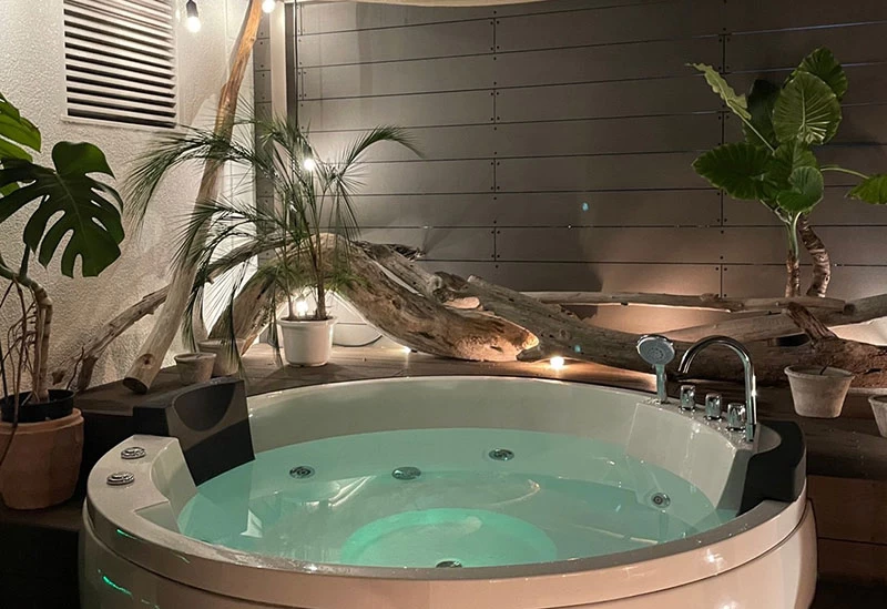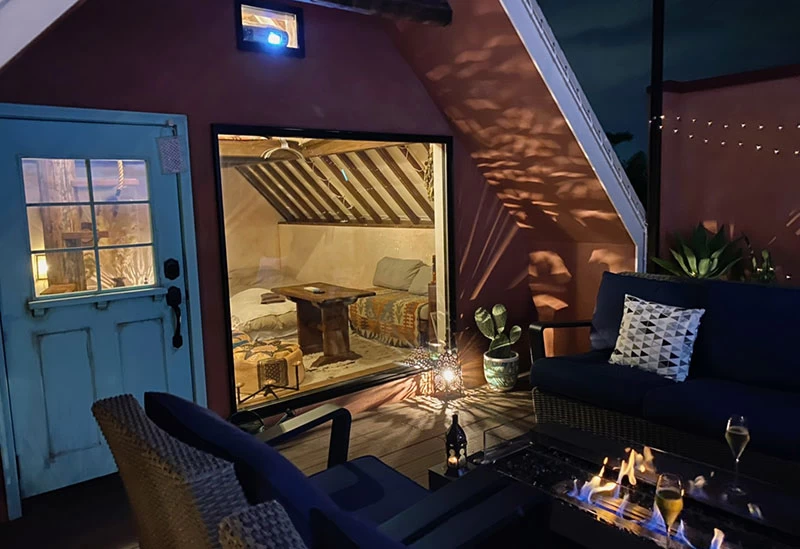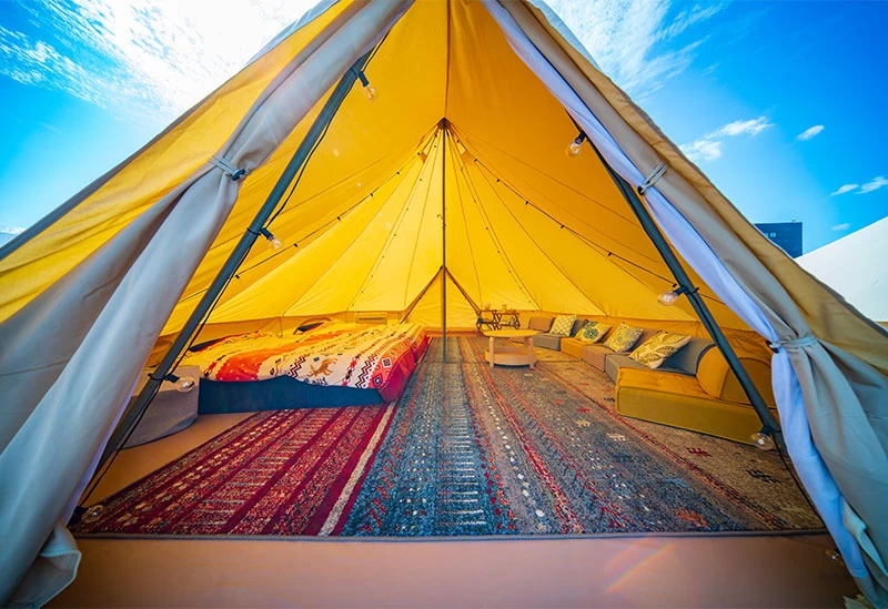 JR各線倉敷駅から徒歩約15分、“モロッコ”をイメージした倉敷美観地区のグランピング施設です。予約は1日1組限定で最大6名まで宿泊可能。24時間楽しめる貸切サウナや専用ジャグジー、アウトドアファニチャー付きテラスなどの設備が揃い、特別感ある時間を過ごせます。プロジェクター完備で、映画を見ながらのんびり過ごすのもおすすめ。宿から歩いて1分ほどの場所にはカジュアルバー「バル・クオーレ」があり、本格カクテルやパーティ用ビュッフェなどが楽しめます。