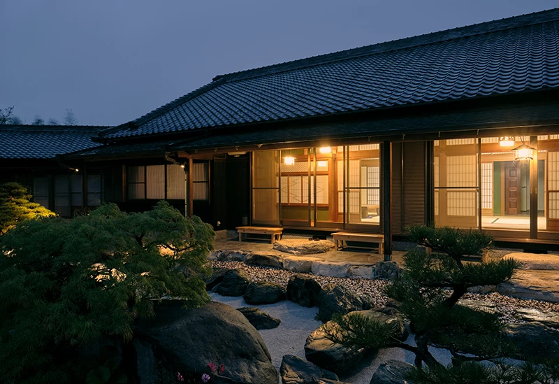 JR伯備線備中高梁駅から車で約5分、歴史的な建造物が残る岡山県高梁市の一棟貸し宿。美しい岡山の自然美と、昔ながらの雰囲気が存分に味わえるロケーションが人気です。2つの和室と1つのベッドルームから成る離れと合わせると最大11人まで宿泊可能で、家族や友達、団体での旅行にぴったり。庭園が眺められる檜風呂や和モダンに整えられた室内の空気感が旅の疲れも癒やしてくれます。
