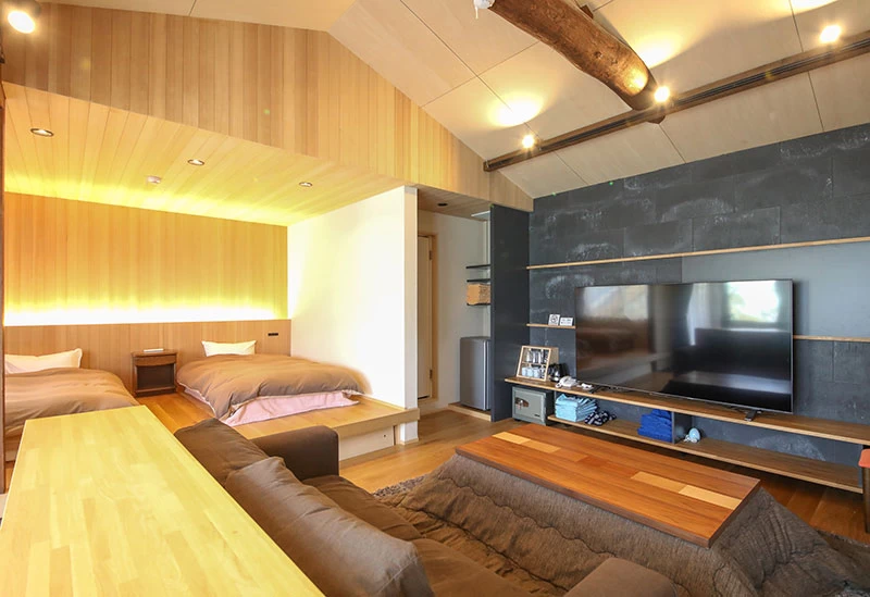 家族や大人数での宿泊なら、ライフラインの整った一棟貸しや貸別荘がおすすめです。備え付けのキッチンを使って共同で調理をしたり、自宅感覚でくつろいだりと、他の宿泊施設よりもリラックスできるプライベート時間を楽しめるのがポイント。1棟貸切のコテージの規模は平均で6〜8人ほどなので、家族や友だちとの団体旅行に最適です。