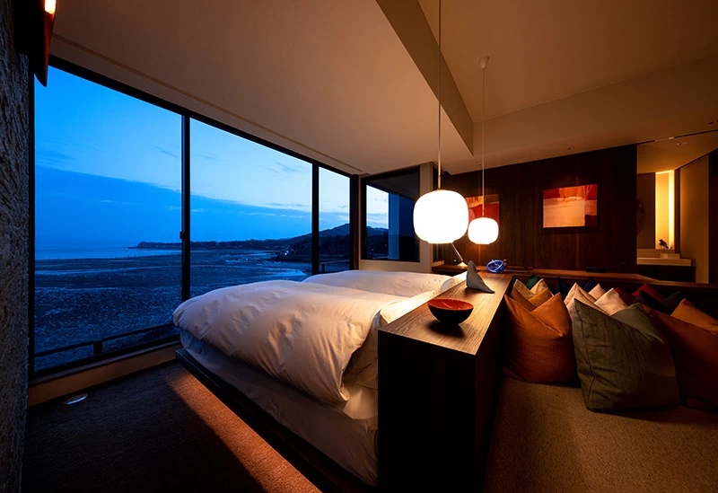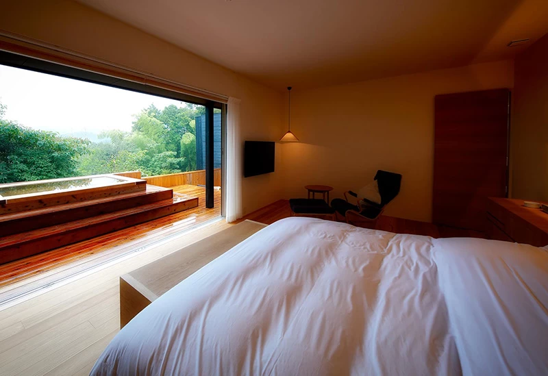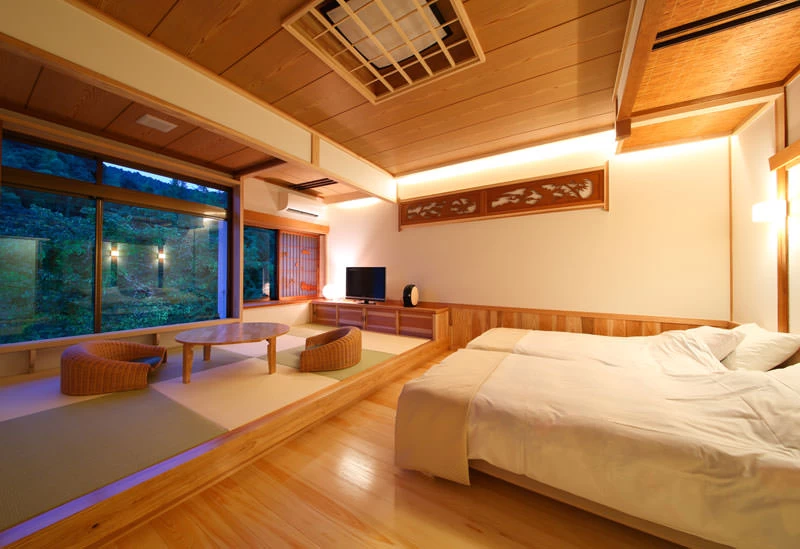 佐賀県武雄温泉にある15万坪もの御船山楽園内に静かに佇む11部屋のみの宿。優美な和の趣向を凝らした部屋は、一歩足を踏み入れると日常を忘れさせてくれるでしょう。宿泊者限定で利用できる茶屋バーや、ワインセラーで管理されたワインなど、大人の上質な旅を満喫できるサービスが充実しています。旬の食材を活かしたこだわりの懐石料理や竹林の中の露天風呂で、寛ぎの時間を過ごしてください。