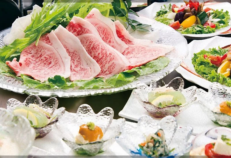 佐賀県嬉野市にある全客室に半露天風呂を備えた贅沢な宿です。それぞれ違ったインテリアや景色を楽しめるお部屋はどれも上質で、特別な思い出を彩るのにぴったりの空間となっています。館内には、大人数での利用も可能な掘りごたつ式の宴会場など、ほかとは一線を画すホスピタリティも魅力。お食事は佐賀牛の会席料理やすき焼きを、プランによって選択することが可能です。