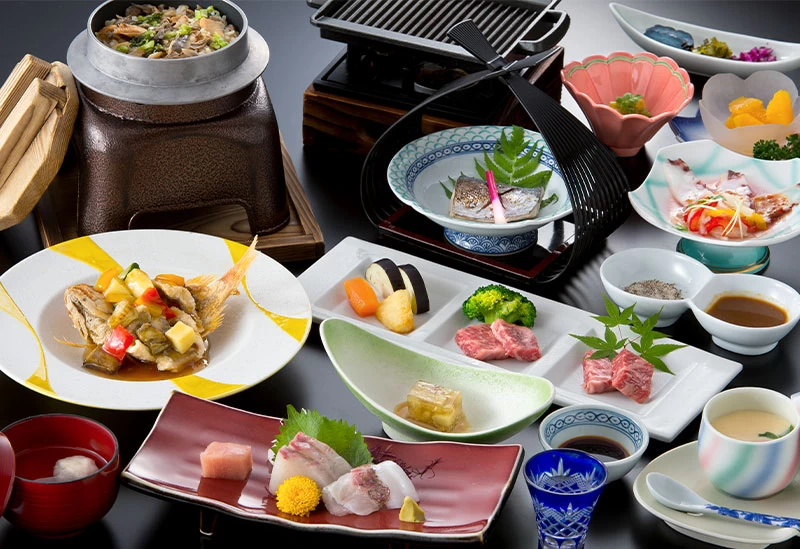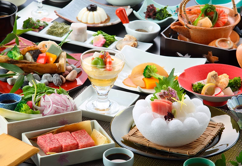 創業は大正時代という老舗旅館。お部屋は本館、東館、離れと、三種類の客室棟の中から選ぶことができ、本館にはバリアフリーの客室も準備されています。宿泊客は大正屋グループの「椎葉山荘」の温泉も利用できるので、温泉地ならではの湯めぐりを楽しむのもおすすめ。お食事は佐賀の四季折々の食材でもてなす、月替わりの会席料理が楽しめます。