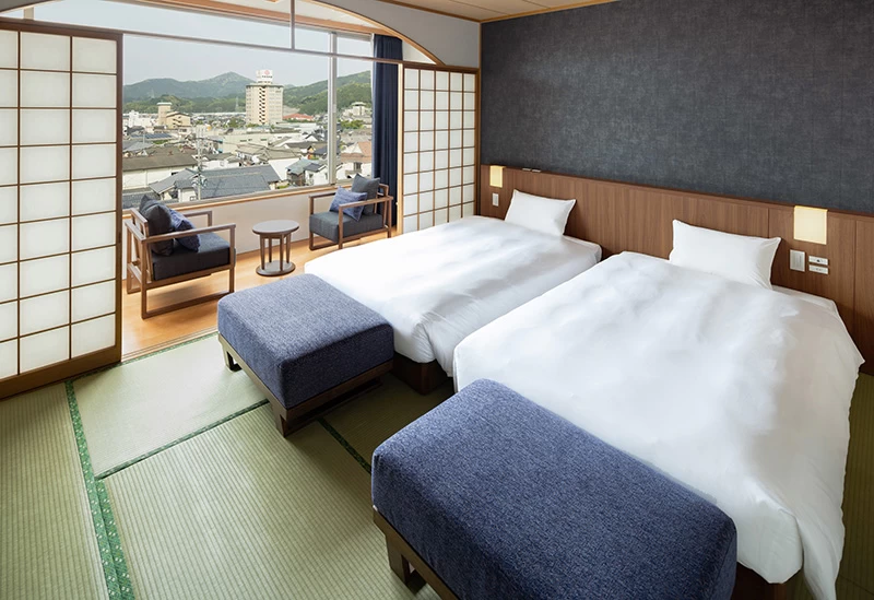 吉野ヶ里歴史公園からほど近い場所にあり、観光で利用するのに便利なホテルです。畳の和室もあり、のんびりと部屋で過ごしたい方や、小さな子ども連れのファミリーには嬉しいポイントです。「吉野ヶ里温泉 卑弥呼乃湯」を併設しており、さまざまな種類の湯船を楽しめるほか、3種類のサウナもあり、心ゆくまで旅の疲れを癒やすことができます。