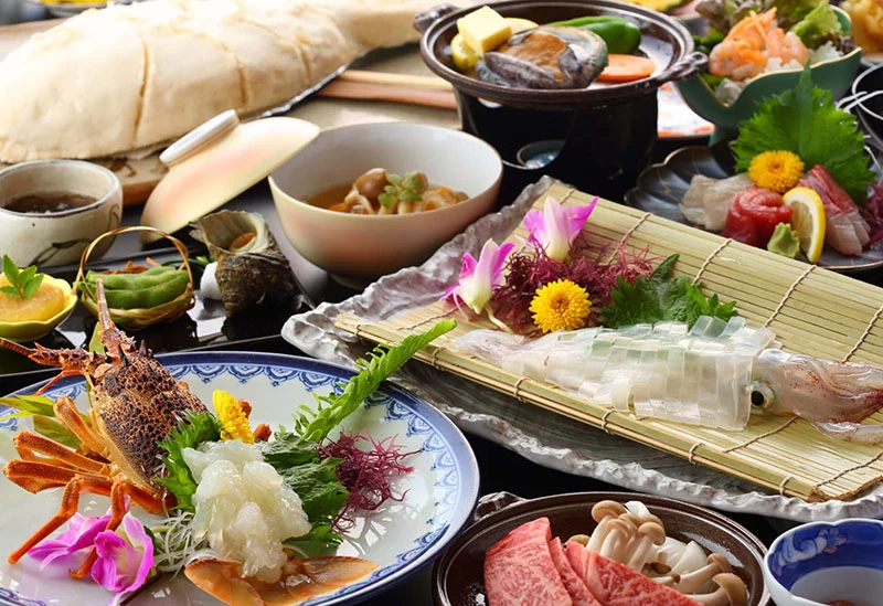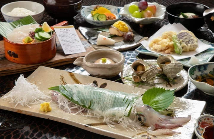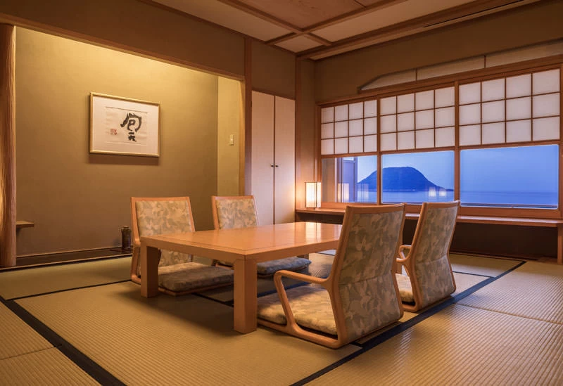 佐賀・唐津湾を望む「水野旅館」は、昭和28年創業の老舗旅館。武家屋敷門や文化財に登録された客室など歴史を感じる建物と、全室オーシャンビューの数寄屋造りが魅力です。館内のいけすから提供される玄界灘の魚介は鮮度抜群で、旬の素材を活かした会席料理やA5ランクの佐賀牛、地元産の野菜や果物も堪能できます。朝食には唐津名物「ぎょろっけ」など地元の味覚が並びます。海景と美食に癒やされる、佐賀を代表する一軒です
