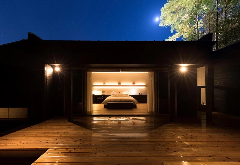 約5500坪の広大な敷地に11個の部屋があり、完全なプライベート空間を確保できる宿です。和と北欧を融合させたお部屋は、一歩足を踏み入れれば「来てよかった」と心から思える極上の空間です。部屋には大きな窓がついており、森の香りや星のまたたきに触れることができるでしょう。また、妊娠中の女性へ、食事などに配慮した特別なプランがあるのも魅力的です。