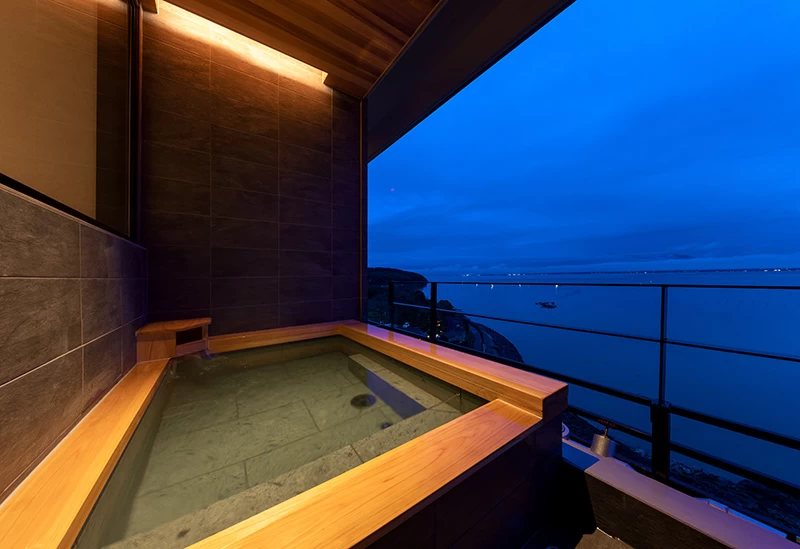 有明海を眼下に望む屋上露天で満天の星と潮騒に包まれる