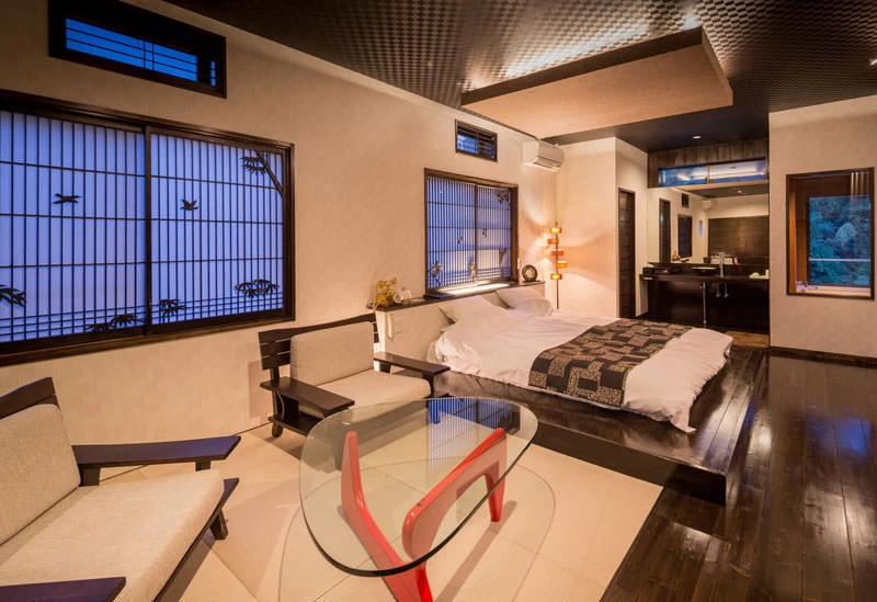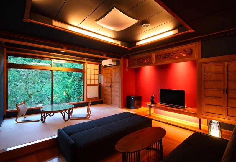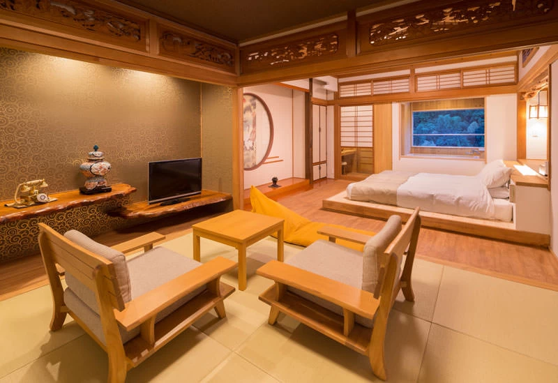 佐賀市内から車で約30分、バス停「古湯温泉」より徒歩すぐにある寛ぎの宿。吉野ヶ里遺跡をはじめとした人気スポットにもほど近く、観光で疲れた体を極上の温泉で癒やせます。客室の中でもとりわけ高級感漂うのが、高円宮様のご宿泊に合わせて作られた貴賓室。貴賓室は、展望貸切風呂を備えた格別の空間となっています。3週間前までにホテルへ写真を送れば宿泊時にスライド動画を上映してくれるプランもあるので、大切な人と訪れる際のサプライズに利用してみてはいかがでしょうか。