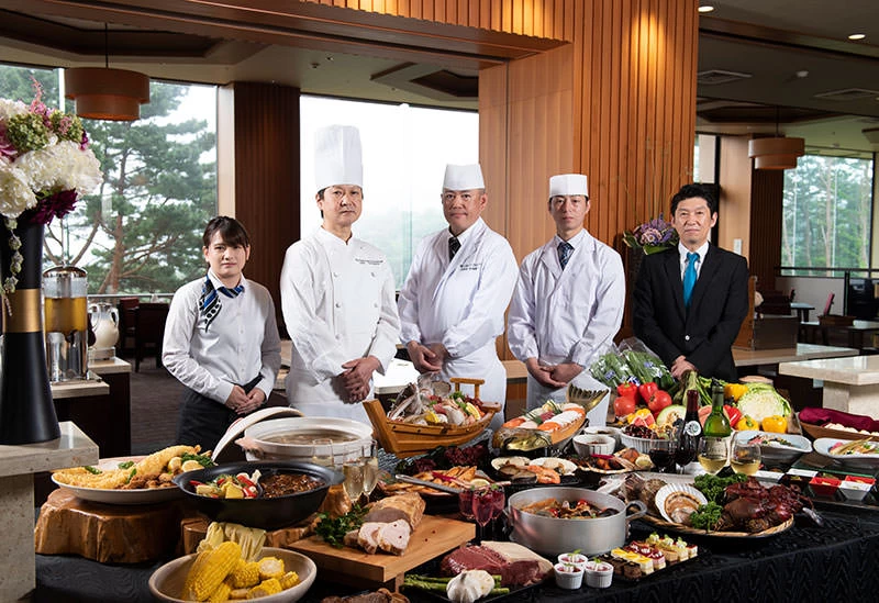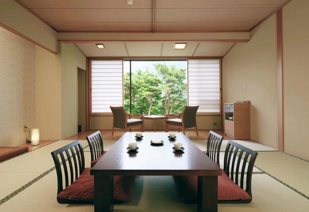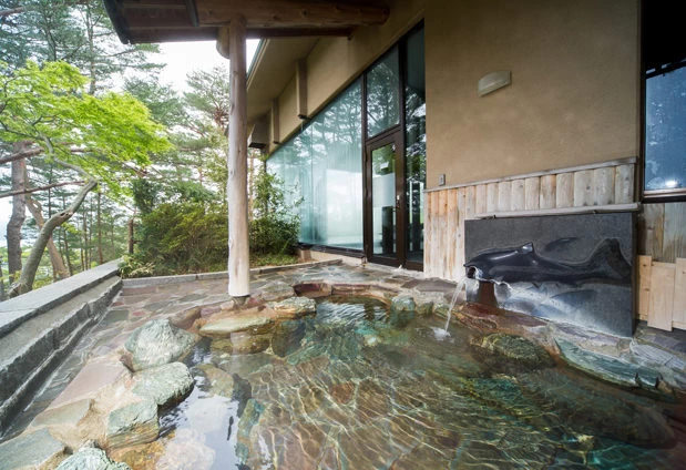 本州最東端にある名勝・浄土ヶ浜の高台に佇み、三陸海岸の雄大な景色を堪能できるホテル。壁一面のガラス窓が開放的なロビーからは、刻々と表情を変える海と松林が一望できます。海側の客室からはもちろん、露天風呂や大浴場からも豊かな緑や太平洋が眺められ、季節によっては大浴場から本州で一番早い日の出を見ることができます。夕食や朝食は三陸沖で獲れた四季折々の新鮮な海の幸を使ったビュッフェ形式で提供。名物「瓶ドン」や「ウニご飯」、「短角牛のステーキ」、「三陸産ホタテ焼き」など、三陸の豪華な味覚を堪能できます。海の目の前で、心豊かな滞在をぜひ体験してみてください